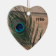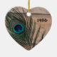 Enfeites de natal de penas tranquilas com um ano personalizável. O tijolo de arenito parece absolutamente vibrante e atordoante com a pena de pavão. Se você está decorando com um tema de Natal Pavão este ano ou precisa de uma ideia de presente de pavão, isso é lindo. Personalize isto para um presente de casamento para que o casal possa ter memória para pendurar todos os anos.