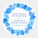 Flores de terra moderna, cor de água, primavera azul brilhante, coroa azul, casamento ou ocasiões com adesivos. Personalize com seus nomes e data de casamento. Parte do conjunto de papelaria de casamento da Wreath Art. © Impressão a aquarela original e design por Sarah Trett. www.sarahtrett.com para www.mylittleedenweddings.com