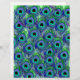 Este artigo de rasparia de 8,5" x 11" apresenta um padrão de penas de pavão em azul, púrpura e verde-claro. O dorso é branco. Excelente para projetos de papelada, artesanatos de casamento e etiquetas para temas de pavão.