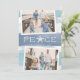 O cartão de Natal em estilo costeiro chic adiciona um charme praiano aos seus cumprimentos de Natal. Perfeito para compartilhar fotos de férias ou para famílias que vivem em locais costeiros, tropicais, de clima quente ou ilhas, este design alegre apresenta duas fotos favoritas em um fundo listrado de aquarela azul transparente com "paz" no centro. Uma estrela-do-mar toma o lugar da letra "A" para um toque costeiro fofo. Adicione sua mensagem de Natal personalizada e seus nomes ou nome da família, junto com uma foto adicional e mensagem personalizada no verso.
