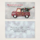 Cartões de visitas de Natal bonitos/etiqueta de presente. Personalize com seu nome e mensagem no verso. Texto diz: Paz Amor e Joy. A imagem é um carrinho de brinquedos fofo com a mão Feliz de Natal pintada ao lado. Carregando uma árvore de Natal decorada nas costas. O fundo é um padrão festivo de prata.