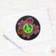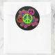 Esta etiqueta tem flores psicadélicos coloridas com sinais de paz.