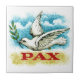 Um impressão do vintage que datam desde 1914 que leia simplesmente o "Pax", a palavra Latin para a paz e descrevem uma pomba com um sprig do verde em seu bico.