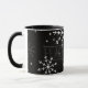 Comemore esta época natalícia com esta caneca personalizada. Diz a "paz na terra" com os flocos de neve pretos e cinzentos pequenos em torno dela.