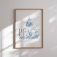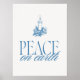 Elegante poster de Natal azul com ilustração de vintage e letra "Paz na Terra". Uma peça de arte de eterno de fim de ano que adiciona paz e beleza à casa sazonal ou à decoração da igreja.