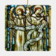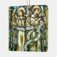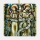 Imagem de vidro manchada de dois anjos que carregandos a mensagem "Paz na Terra e boa vontade para os homens, glória para Deus no mais alto"