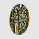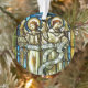 Imagem de vidro manchada de dois anjos que carregandos a mensagem "Paz na Terra e boa vontade para os homens, glória para Deus no mais alto"