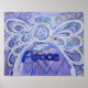 "Paz" Pintura de Palavras Anjos Inspiracionais - A palavra para "Paz" é pintada em tons de lavanda com sotaques roxos, azuis e dourados. Uma pomba flutua acima da palavra paz e há vários corações no anjo. A pintura acrílica tem contraste textural e brilho de uma camada de luz de brilho. Você pode personalizar este inspirador impressão de poster de anjo artístico de guardião com seu próprio texto e imagens usando a opção "Personalizar". Os lucros desta venda apoiam os 501(c)3 DonnaBellas Angels sem fins lucrativos.