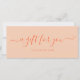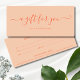 Certificado de presente de pêssego fuzz de guião simples e elegante. Este elegante certificado de presente de script ajustado perfeitamente dentro de um envelope comercial nº 10 padrão. Perfeito para a sua marca e negócios.