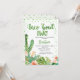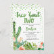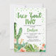 Peach Green Taco Bout Two segundo aniversário Invitation Sweet taco cerca de dois segundos de convite de aniversário com alguns cactus florescentes coloridos e suculentos. Este convite de segundo aniversário temático de fiesta também apresenta alguns pontos de aquarela verdes e cabeçalho de aquarela verde e é ideal para a segunda festa de aniversário de uma menina.