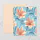 Peach hibiscus flowers arranged over a soft blue background with flowing leaves, paired with a warm neutral peach-toned backing. The design features large, airy blooms with a balanced, open composition.