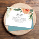 Crie um cartão de RSVP de casamento personalizado que complementa perfeitamente o seu grande dia com o nosso elegante design floral de pêssego e o cartão de resposta de casamento azul minimalista. Apresentando belas folhas de água verde e escrita de caligrafia na moda, este RSVP botânico inclui um código QR para fácil acesso ao seu website de casamento. Quer você esteja planejando uma celebração de primavera, verão, inverno ou outono, esta modelo de cartão de resposta versátil mostra a tipografia moderna e a elegância do eterno. Perfeito para adicionar um toque pessoal aos seus convites, este modelo assegura que os seus convidados possam responder convenientemente em estilo.
