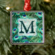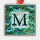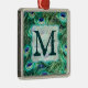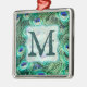 Peacock Bird Feather Teal Turquoise Vintage Monograma Vitoriano Enfeites de natal inicial Personalizado