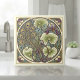This Art Nouveau tile design features a delicate arrangement of dragonflies, lotus leaves, and flowing botanical curves framed within an elegant circular border. The palette blends soft sage green, muted teal, warm gold, deep indigo, and touches of violet for a beautifully layered, painterly look. Peacock-style feather motifs and sweeping tendrils give the composition its signature Art Nouveau movement and grace. Richly detailed yet soothing in tone, this design captures the enchanting, nature-driven artistry of the era. Search ID1193 to see other tiles in this unique design set. Note: design may contain generative content