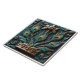 Coroa com penas pavão, cor dourada e turquesa, detalhes complexos, design de ornamentado, composição simétrica, emblema real, fundo negro, estilo de colheita, arte decorativa.