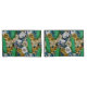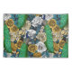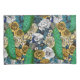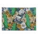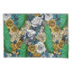 Padrão desenhado à mão com pavões e vários rosas sobre fundo escuro