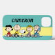 Veja Lucy, Charlie Brown, Snoopy, Sally e Linus sentados juntos.