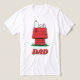Get ready to cheer for the birthday star with this fun and comfy Peanuts Dad T-Shirt! It features the classic image of Snoopy relaxing on his bright red doghouse, perfectly paired with bold, customizable text that simply states "DAD." This is the ultimate, relaxed look for any father celebrating his child's big day with a Snoopy theme. It's a charming way to coordinate with the party while showing off your love for the Peanuts Gang!