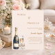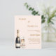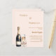 A modern, stylish and glamorous invitation for a Pearls and Prosecco Bridal Shower. A blush ivory background with a prosecco, champagne bottle, glass flute with a bow with pearls. The name is written with a modern hand lettered style script. Personalize and add a name and party details.