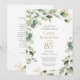Este convite de aniversário de 85 anos com eucalipto em aquarela, detalhes em folha de ouro e pontos salpicados de ouro é perfeito para celebrar sua esposa, mãe, irmã, tia, amiga, avó. Seu design suave e fluido é moderno e tradicional. Selecione Personalizar este modelo para torná-lo único. Em segundos, você verá seus convites de aniversário de 85 anos.