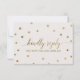 Este cartão de resposta para música com bolinhas douradas é perfeito para um casamento elegante. O design simples apresenta confetes dourados em um fundo creme champanhe com bela caligrafia em folha dourada falsa. Monte sua lista de convidados e a lista de músicas para a pista de dança de uma só vez! Este cartão de resposta de casamento convenientemente pergunta aos convidados se eles poderão comparecer ao seu casamento e também qual música os fará dançar.