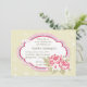 Um decal tênue, oval, com um verme cor-de-rosa, azul e framboesa e um canto de pedras, faz um convite encantador para a celebração de uma mulher.
