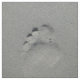 Uma fotografia de uma pegada é telhada para fazê-lo olhar como uma pegada esquerda e direita que repete através do tecido. A pegada original foi deixada em uma praia do oceano de Califórnia por alguém que anda ao longo da areia molhada. As pegadas devem ser tamanhos real. O teste padrão é subtil com a cor total que é cinzenta. Poderia ser usado para adicionar uma sensação relaxed a sua decoração home ou para criar um artigo original da roupa.