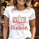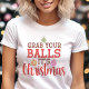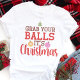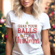 Traga um pouco de humor de feriado para o seu guarda-roupa festivo com esta camiseta engraçada "Pegue suas bolas, é Natal"! Com tipografia divertida e ilustrações de enfeites de Natal, este design é perfeito para adicionar um toque atrevido à temporada de festas. Se você está indo a uma festa de Natal ou apenas espalhando risadas, esta camisa certamente fará todos sorrir. É uma ideia de presente divertida e festiva para qualquer pessoa que goste de humor leve durante o Natal!