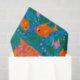 Uma folha de Papel Tecido, com um padrão de peixes coloridos nadando no oceano, de uma colagem de papel pintada à mão por Judy Adamson. Parte da coleção "Fish in the Sea" de Posh e Painterly, este padrão pode ser ajustado para ajustado qualquer folha de papel tecidular.