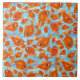 Um Azulejo Colorido Grande Cerâmico, com padrão de peixes laranja nadando no oceano, de uma colagem de papel pintada à mão por Judy Adamson. Parte da coleção Posh e Painterly 'Fish in the Sea', este padrão pode ser ajustado para ajustado qualquer Azulejo, assim você pode também mudar a escala se quiser. (Adicionar uma armação de madeira para usar como Trivet.)