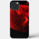 O tema em questão diz respeito a uma raça distinta de peixe-dourado, caracterizada pela sua coloração vermelha ou laranja flagrante. Essa matiz única exibe variações de brilho quando iluminada a partir de diferentes ângulos, revelando uma interação cativante de tons claros e escuros que se desloca de acordo com o comprimento de onda. Acompanhando essa ilustração, a tipografia exibe com destaque a frase "Peixe Vermelho" sobre um fundo preto, projetado para aprimorar o apelo estético do modelo "iPhone 13 Pro Max, Case-Mate (Mal)".