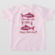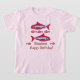 Peixe Vermelho para Crianças Camisas-T Feliz Aniversário de 2025 com um impressão animado com peixes. A paleta de cores inclui tons vibrantes de vermelho e azul. Esta Camisa de Peixe Vermelho é perfeita para todas as Crianças. Você pode mudar o texto para seus próprios desejos criativos, nome ou datas de nascimento!