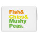 Peixes e Chips e Ervilhas Mushy. Cartão