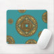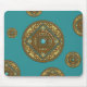 Esta mandala Peixes apresenta uma pedra aquamarina cercada pelo símbolo da placa, a constelação, e o símbolo alquímico de Água entre filigrana e tecelagem.