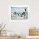 Poster é mostrado com uma impressão de foto de uma doca russa com pelicanos. Personalize este item ou comprar como está. Imagem do stock