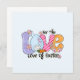 Este design bonito e colorido apresenta a frase "Pelo amor da Páscoa" com as letras coloridas da palavra "amor" com um belo coelho e ovo de Páscoa. É perfeito para as comemorações de domingo de Páscoa e um presente para a páscoa.