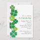 Celebrar Ruas. O dia de Patrick em estilo com este convite que apresenta uma coluna de trevos em vários padrões que fazem fronteira com o lado esquerdo do convite. O gráfico se repete no reverso. Disponível com produtos correspondentes.