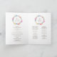 Penas boêmicas simples e dobradas, pré-dobradas, e miçangas coloridas de cor d'água em programas de núpcias brancos. Edite estes programas de casamento com seu próprio nome, datas, texto da cerimônia, assistentes de festa de casamento e obrigados. Um programa simples, mas elegante, simplesmente substitua o texto de amostra por seus detalhes de casamento. Penas nativas tribais e programas de cerimônias de casamento miçangas. © Impressão a aquarela original e design por Sarah Trett. www.sarahtrett.com para www.mylittleedenweddings.com
