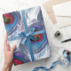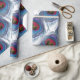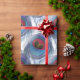 Papel de embrulho na moda com belo padrão de penas pavão azul sobre fundo branco.