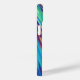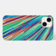 Penas geométricas abstrato azuis, laranja, verde, magenta e lacrimogênea.