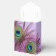 Caixa de favores do partido elegante com belas penas de pavão sobre fundo violeta. Excelente de casamentos temáticos com penas de pavão, chás de panela, aniversários e outras ocasiões especiais. Se precisar de ajuda com este design, sinta-se à vontade para me contactar.