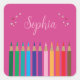 Um adesivo quadrado cor-de-rosa fofo desenhado para rotular itens do seu filho para o regresso à escola. © ArianeC Ilustrações — Todos os direitos reservados