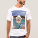Uma camisa com umas 90 libras. laboratório amarelo, em uma camisa havaiana, em uma praia tropical. Você pode personalizar o texto ou suprimir d. Você poderia suprimir do cair assina frouxamente se você deseja. O fundo da praia é um publicdomainpicture.