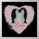 Lindos pinguins romanticamente aninhados num coração cor-de-rosa.