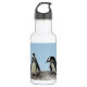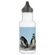 Esta garrafa d'água apresenta Pinguins Africanos em pé sobre uma borda rochosa em frente a um céu azul. São aves aquáticas, sem voo, cujas asas se tornaram nadadeiras. Cada um tem uma faixa preta e pontos pretos no peito. O padrão das manchas é único para cada pinguim, assim como as digitais humanas. Eles têm glândulas cor-de-rosa sobre os olhos e pés rosas e pretos.