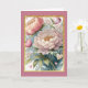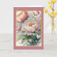 Este design de cartão é um pastel em estilo aquarela de flores de peônia com uma borda dourada brilhante e um fundo rosa. É sugerido como um cartão de Pensamento em Você, mas também pode ser personalizado como um cartão de aniversário ou de melhoras.