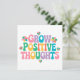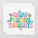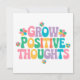 Enfermeira uma mentalidade mais brilhante com este cartão de saudação elevador do "Crescer Pensamentos Positivos", com flores brancas e brancas e cartazes motivacionais. Este trabalho de arte alegre encoraja o espírito, o amor próprio e o crescimento pessoal, fazer-o como um presente perfeito ou lembrete pessoal para permanecer positivo e espalhar boas vibrações. Esta design floral traz beleza e encorajamento à vida cotidiana.