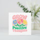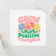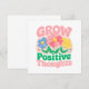 Enfermeira uma mentalidade mais brilhante com este cartão de saudação elevador do "Crescer Pensamentos Positivos", com flores brancas e brancas e cartazes motivacionais. Este trabalho de arte alegre encoraja o espírito, o amor próprio e o crescimento pessoal, fazer-o como um presente perfeito ou lembrete pessoal para permanecer positivo e espalhar boas vibrações. Esta design floral traz beleza e encorajamento à vida cotidiana.