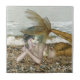 Uma sereia fica em uma praia rochosa pensando em alguém especial.