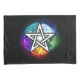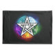 Pentagrama luminoso desenhado artificialmente com cinco elementos mágicos, água, terra, fogo, astral, ar sobre fundo negro. Pentagrama Wiccan. Wicca